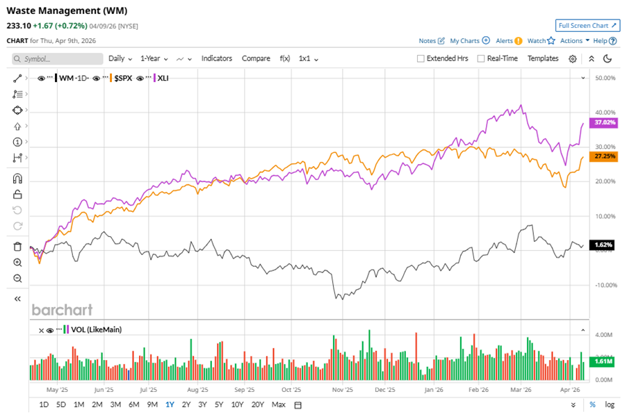 WM stock has underperformed the S&P 500 Index’s ($SPX) 25.1% gains over the past 52 weeks, with shares up 3.9% during this period. Similarly, it underperformed the State Street Industrial Select Sector SPDR ETF’s (XLI) 35.8% gains over the same time frame.