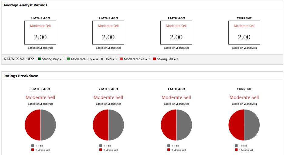 Overall consensus is bleak, but the consensus price target is surprisingly optimistic. According to Barchart data, analysts’ 12-month average price target is $1.30, implying a massive 69% upside. That said, there are no bullish outliers right now; most firms expect breakeven or losses.