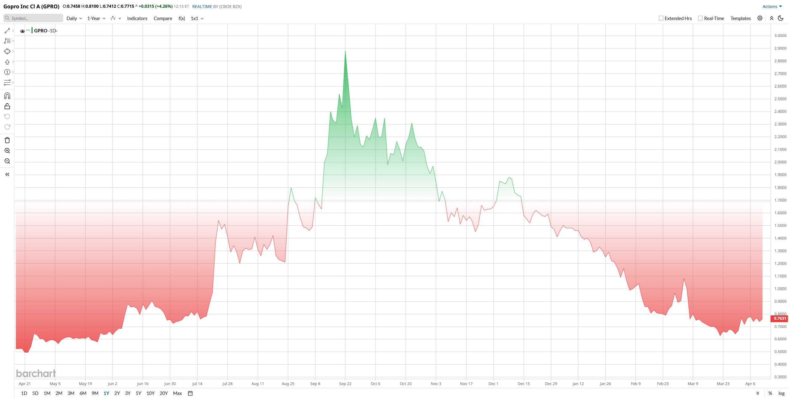 GPRO stock has had a pretty rough year this year. It plunged about 45% year-to-date (YTD) due to weak sales and skepticism. In early April 2026, it traded near $0.75, a low level not seen since 2020, but investors' hopes for a pullback on hopes that cost cuts and new products will help.