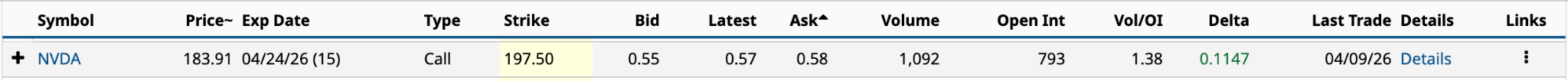 However, with a delta of 0.1147, you could double your money by selling to close the position before expiration if NVDA appreciates by $5.06 (2.7%). The last time it traded around $190 was late February.