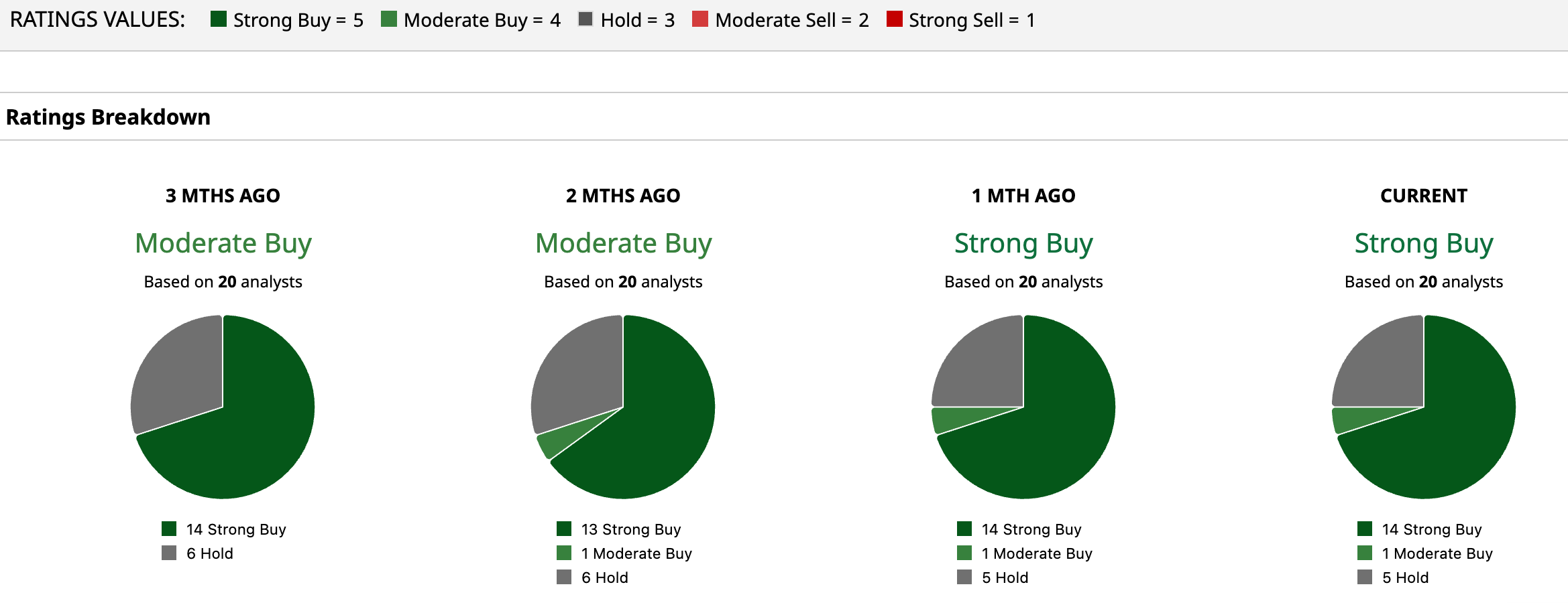 Wall Street’s outlook on the stock is optimistic, with a consensus “Strong Buy” rating overall. Of 25 analysts covering the stock, 19 recommend a “Strong Buy,” one opts for a “Moderate Buy,” and the remaining five suggest a “Hold.”