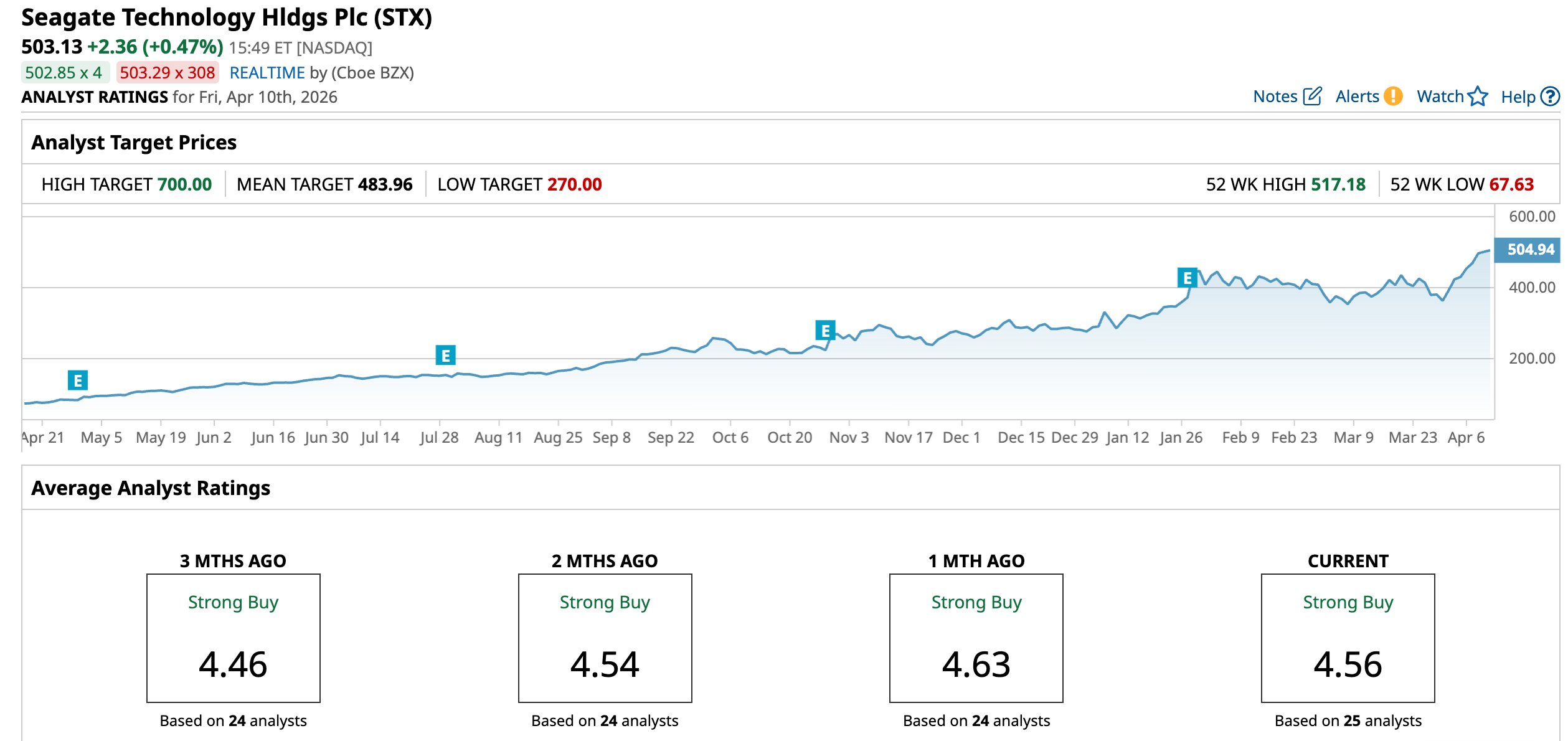 The stock has already surged past the average analyst price target of $483.96, while the Street-high price target of $700 suggests that STX could rally as much as 39% from here.