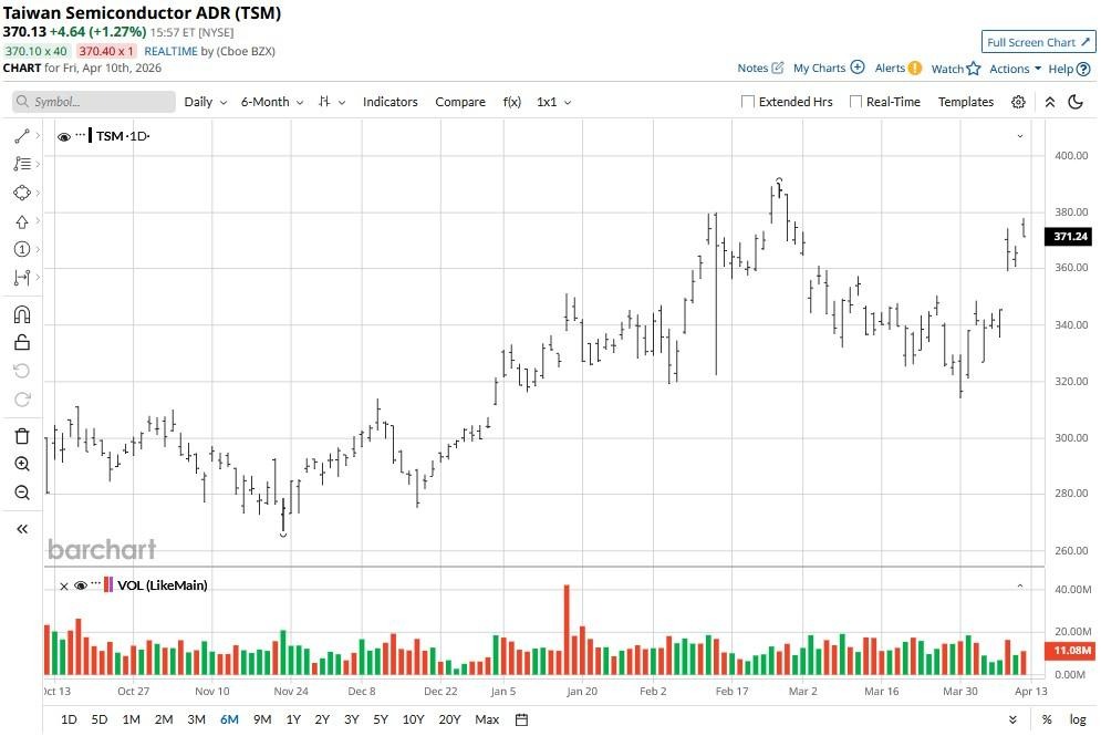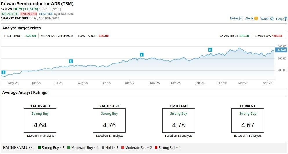 According to Barchart, the consensus rating on TSM shares is currently a “Strong Buy," with the mean price target of about $419 indicating potential upside of roughly 14% from here.