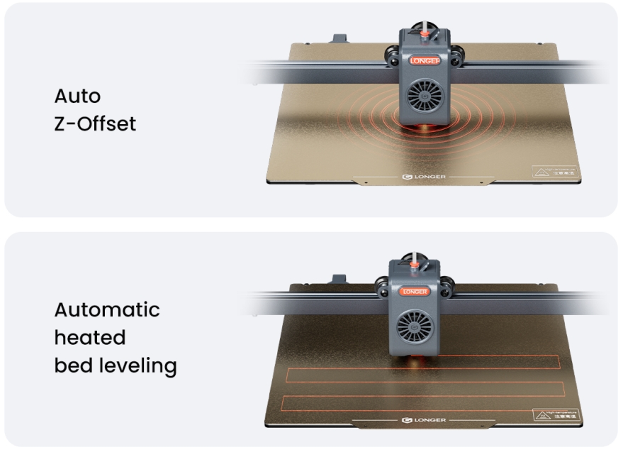 The LK10 series features eddy-current auto bed leveling, a non-contact system that precisely scans the bed surface for height variations. Unlike traditional point-based leveling, it performs linear scans for higher accuracy and faster setup. During printing, real-time Z-axis compensation ensures even layers, reducing warping and clogs.