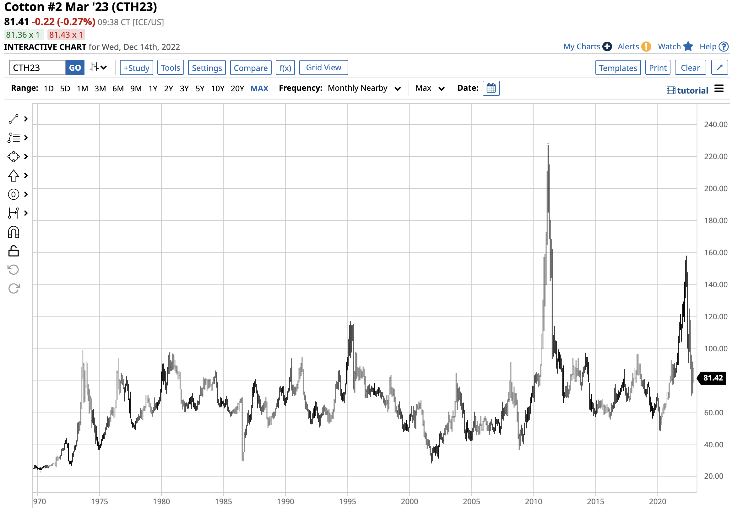 In a Barchart article in late November, I highlighted that cotton futures tend to peak during the spring. The market will likely have to wait until the first half of 2023 for any significant recovery rally.