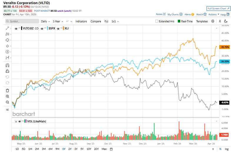 VLTO shares have surged marginally over the past year, lagging behind the S&P 500 Index’s ($SPX) 29.4% rise and the State Street Industrial Select Sector SPDR Fund’s (XLI) 38.9% gains during the same time frame.