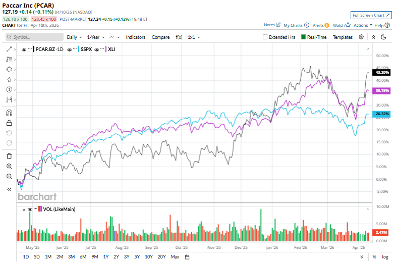 PCAR shares have increased 43.3% over the past 52 weeks, outperforming the S&P 500 Index’s ($SPX) 29.4% returns and the Industrial Select Sector SPDR Fund’s (XLI) 38.9% gains during the same time frame.