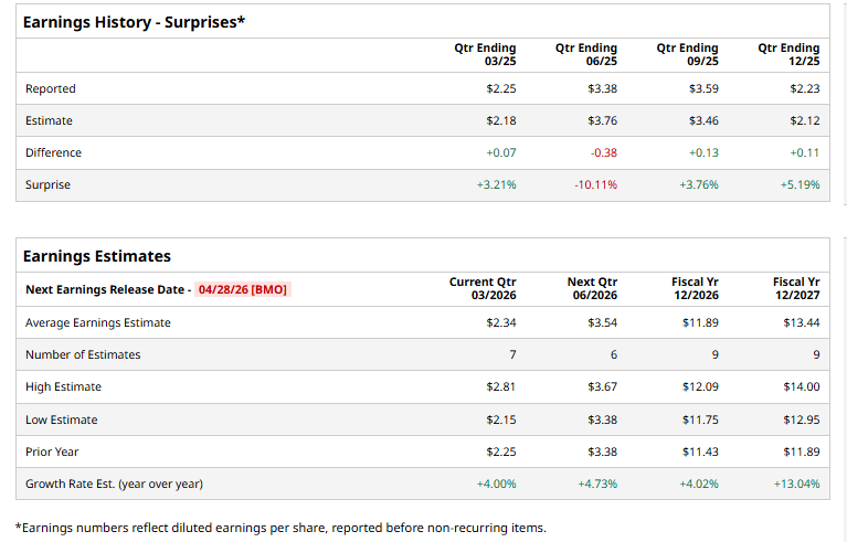 Sherwin-Williams is set to report its first-quarter results before the markets open on Tuesday, Apr. 28. Analysts expect the company to post an EPS of $2.34, up 4% year over year. The company’s earnings track record has been mixed, having exceeded Street expectations in three of the past four quarters while falling short once.
