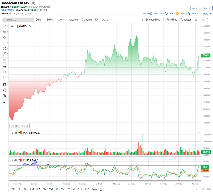 Broadcom stock has been on a powerful run, and investors have clearly rewarded its AI-led playbook. Over the past 52 weeks, AVGO has surged 115.64%, driven by strong AI networking demand, a successful VMware integration, and steady high-margin software earnings. Along the way, the stock notched 44 new highs, even touching a peak of $414.60 on Dec. 10, before cooling off and currently sitting about 10.38% below those levels.