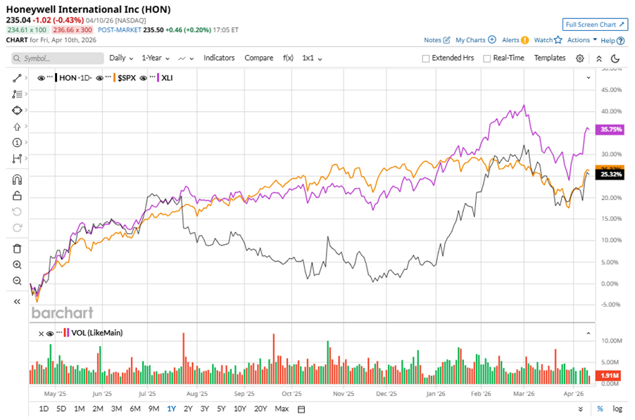 HON stock has underperformed the S&P 500 Index’s ($SPX) 29.4% gains over the past 52 weeks, with shares up 28.8% during this period. Similarly, it underperformed the State Street Industrial Select Sector SPDR ETF’s (XLI) 38.9% gains over the same time frame.