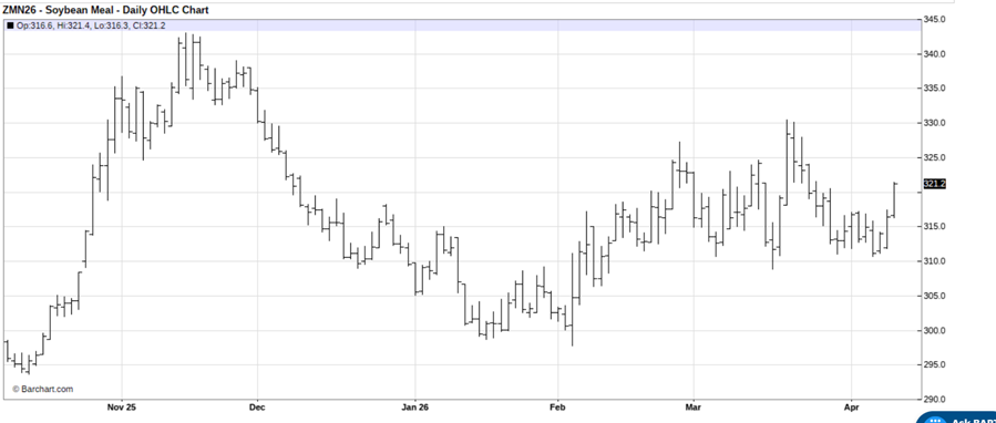July soybean meal (ZMN26) futures present a buying opportunity on more price strength.