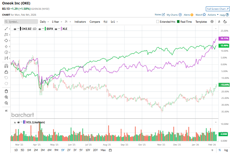 Shares of the energy company have underperformed the broader market over the past 52 weeks. OKE stock has declined 13.2% over this time frame, while the broader S&P 500 Index ($SPX) has rallied 15.6%. However, shares of ONEOK are up 13.1% on a YTD basis, surpassing SPX's 1.7% gain.
