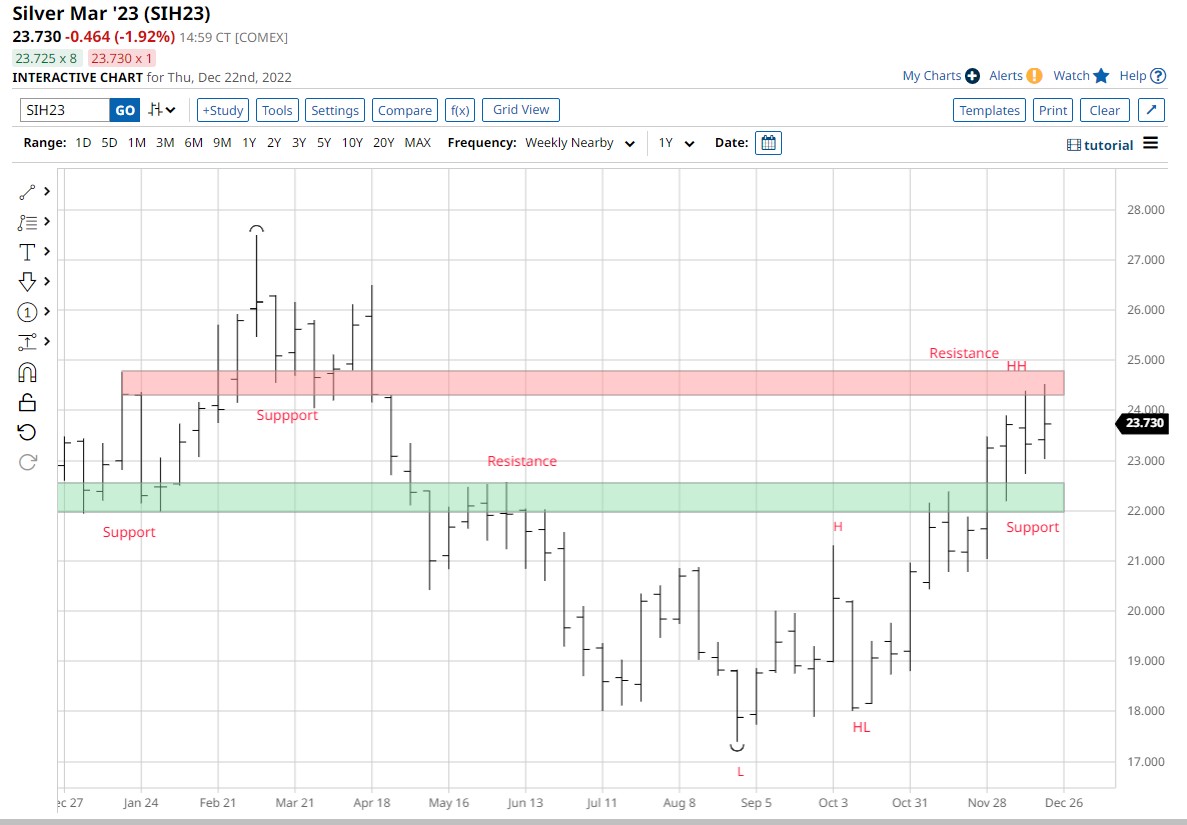 Gold and silver look to be starting the new year on a bullish note. Goldman Sachs reported that they anticipate commodities to have returns of 43% in 2023. If this happens, both metals should perform well in that bullish environment.Â