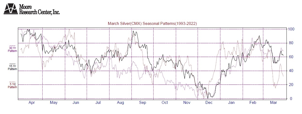 Due to the correlation between silver and gold, the seasonal patterns appear synonymous. MRCI research found that silver usually has its low yearly prices in December. This year the bulls came early and aggressively bought silver in September. MRCI has found that an early seasonal trough causes prices to have a longer uptrend duration than average. The January and February rallies are usually the strongest of the year and coincide with the Chinese New Year, where gold buying will support the closely correlated silver market.Â