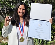 Pictured is Linda Martinez Haley accepting her Presidential Lifetime Achievement Award from President Joseph Biden.