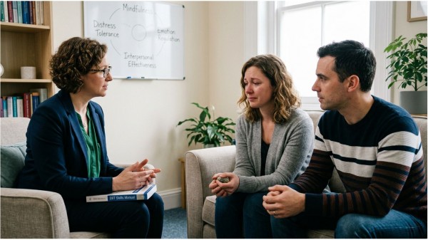Claire Sainsbury is a fully accredited member of the British Association for Counselling and Psychotherapy (MBACP), holds a Master's degree in counselling, and has earned an Advanced Level 3 certification in Emotional Freedom Technique (EFT Tapping). The guide covers major therapeutic modalities, including Emotionally Focused Therapy (EFT), the Gottman Method, Cognitive Behavioural Therapy (CBT), psychodynamic therapy, and Dialectical Behaviour Therapy (DBT). Rather than applying a single fixed method, Claire tailors her approach to what each couple needs, drawing on the breadth of her training to support the guide's scope.