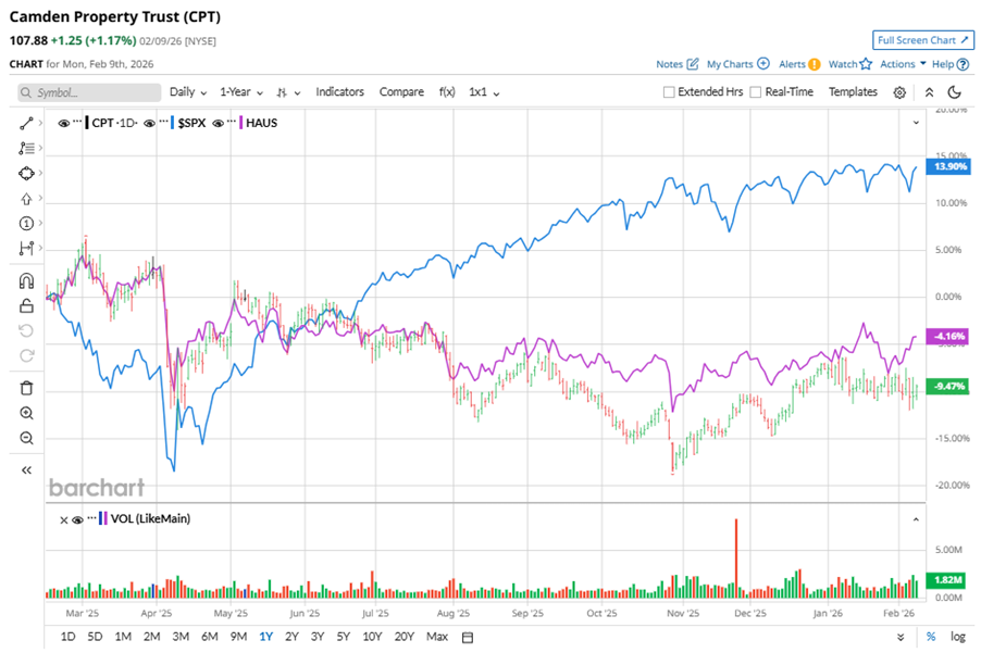 Shares of this leading apartment REIT have underperformed the broader market considerably over the past year. CPT has declined 9.5% over this time frame, while the broader S&P 500 Index ($SPX) has rallied nearly 15.6%. In 2026, CPT stock is down 2%, compared to the SPX’s 1.7% rise on a YTD basis.