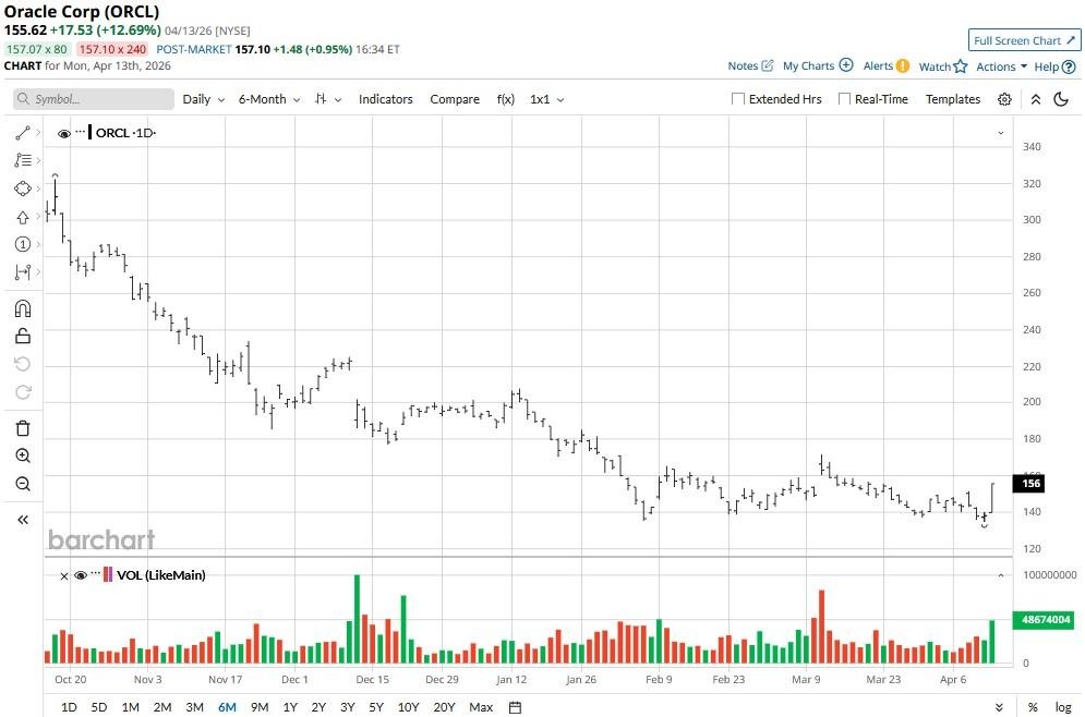 Despite this surge, however, Oracle stock remains down nearly 25% versus its year-to-date high.