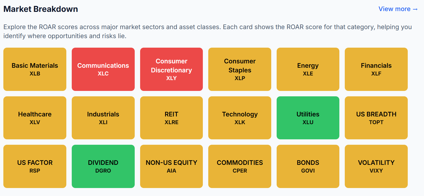 Rob Isbitts created the ROAR Score, based on his 40+ years of technical analysis experience. ROAR helps DIY investors manage risk and create their own portfolios. For Rob's written research, check out ETFYourself.com.
