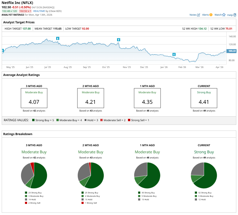Wall Street analysts maintain a “Strong Buy” consensus rating on Netflix ahead of Q1 earnings.