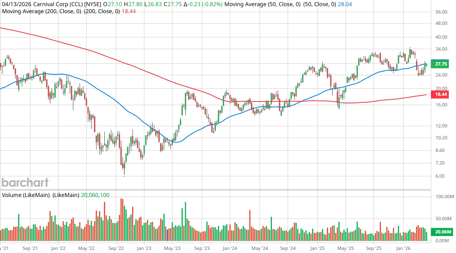 Still, I like the idea based on the inductive observations. As an aggregate of all signals, CCL stock would likely not hit the $30 target. However, I’m not making an aggregate argument; I’m specifically focused on the 3-out-of-10 green candlestick indicator.