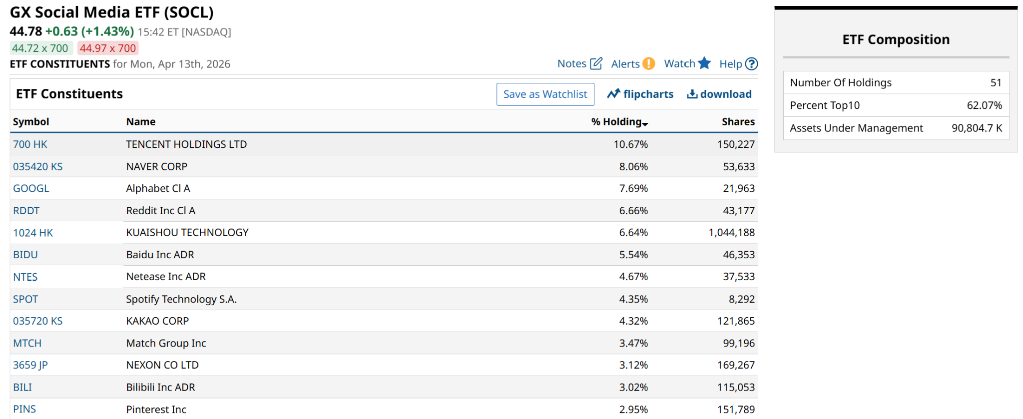 The primary driver for SOCL right now is the massive divergence between its domestic and international components. While U.S. giants like Meta Platforms (META) and Alphabet (GOOG) (GOOGL) have benefited from a flight to quality and robust digital ad spending, the international holdings — which make up over half the fund — are facing a much steeper climb.
