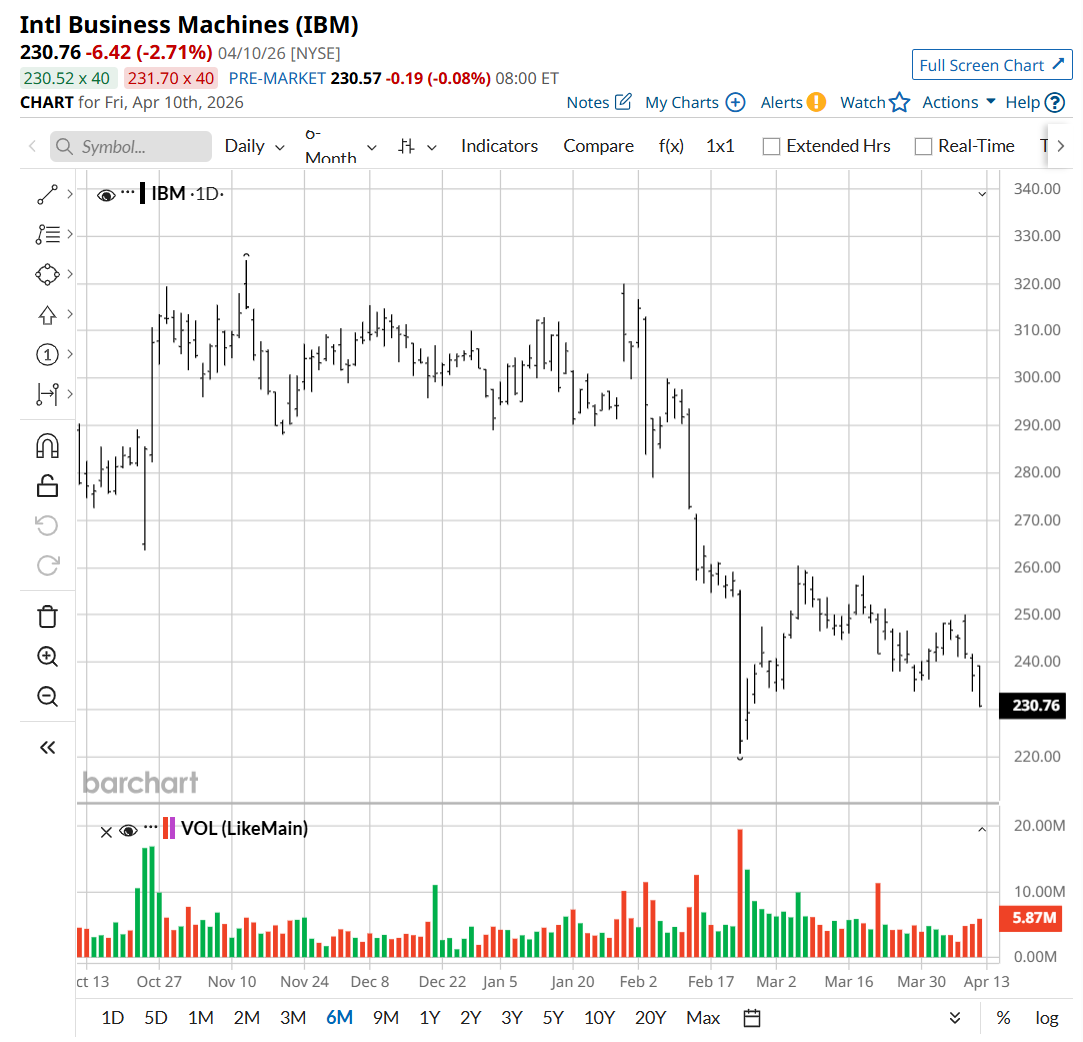 Ahead of the company's Q1 earnings report on April 22, Stifel analyst David Grossman cut the firm’s price target on IBM stock from $340 to $290. However, the analyst maintained a “Buy” rating. The price target revision reflects updated 2026 estimates, taking into account potential headwinds from the Iran war as well as software and services growth. At the same time, the outlook also includes a positive factor from the Confluent acquisition, which may close earlier than previously expected.