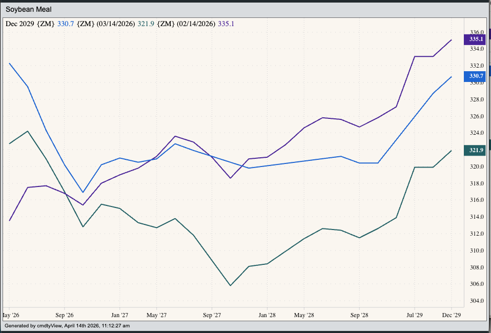 The first question is how to determine if a market is supply-driven or demand-driven? We can usually look at forward curves to give us a clue. (Note my use of the Vodka Vacuity: There are no Absolutes in markets.) If a rally is being driven by a short-term short supply scare, then the forward curve will look like a check mark, with the first few contracts in backwardation (inverted) with deferred issues returning to a contango (carry). Interestingly enough, I ran the traps of the various markets I watch and couldn’t find an example of the classic checkmark, with the closest I came up in soybean meal where the turn comes with the new-crop October futures contract (ZMV26).