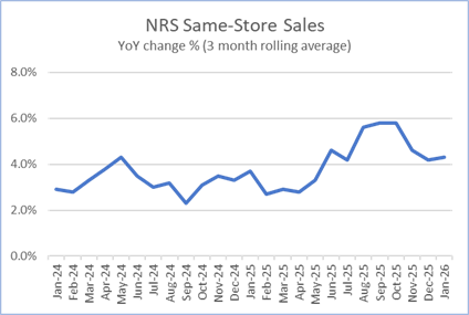Same-store data comparisons of January 2026 with January 2025 are derived from approximately 207 million transactions processed through the approximately 24,700 stores on the NRS network that scanned transactions in both months. Same-store data comparisons of January 2026 with December 2025 are derived from approximately 260 million transactions processed through approximately 32,500 stores.