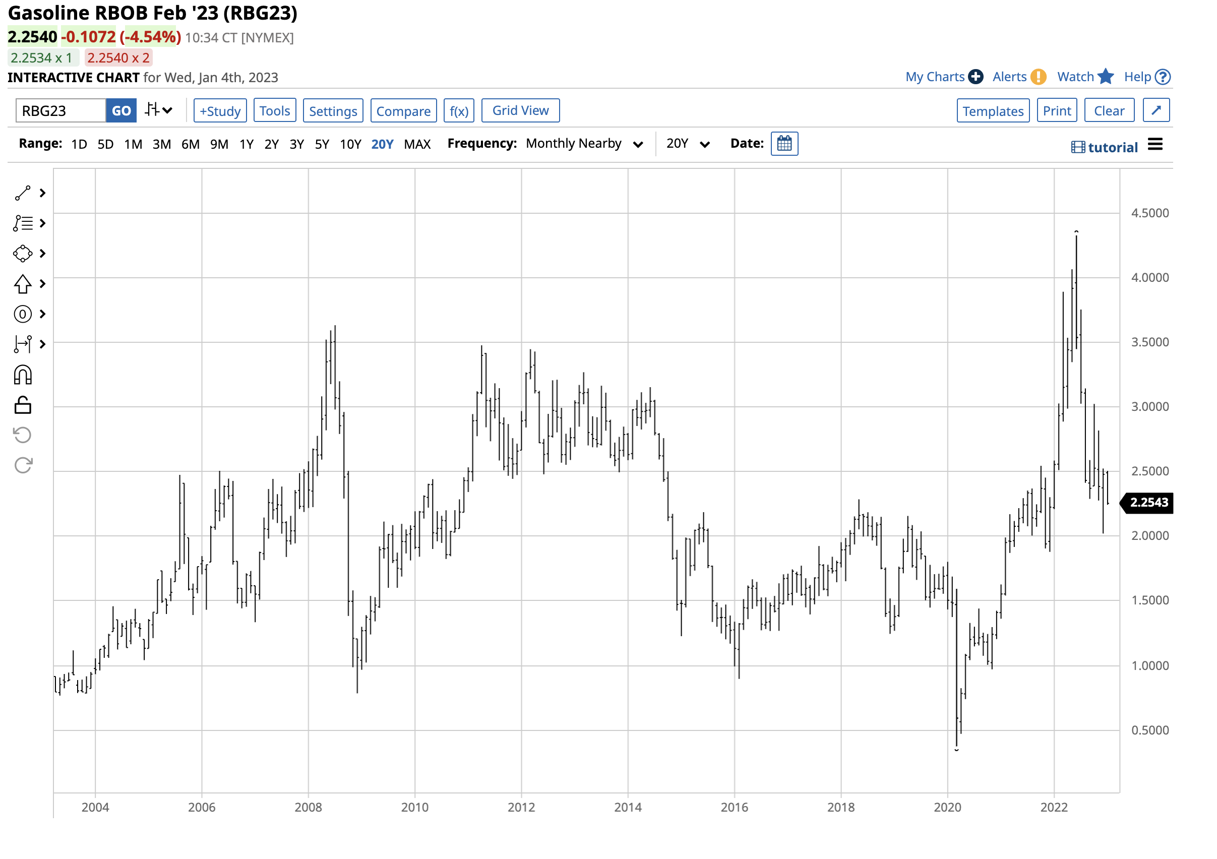 The chart of NYMEX gasoline futures shows a 4.58% gain in Q4, closing at $2.4783 per gallon wholesale. Gasoline futures moved 11.40% higher in 2022 and traded to an all-time $4.3260 per gallon high in June 2022 before correcting. June is the beginning of the peak driving season.