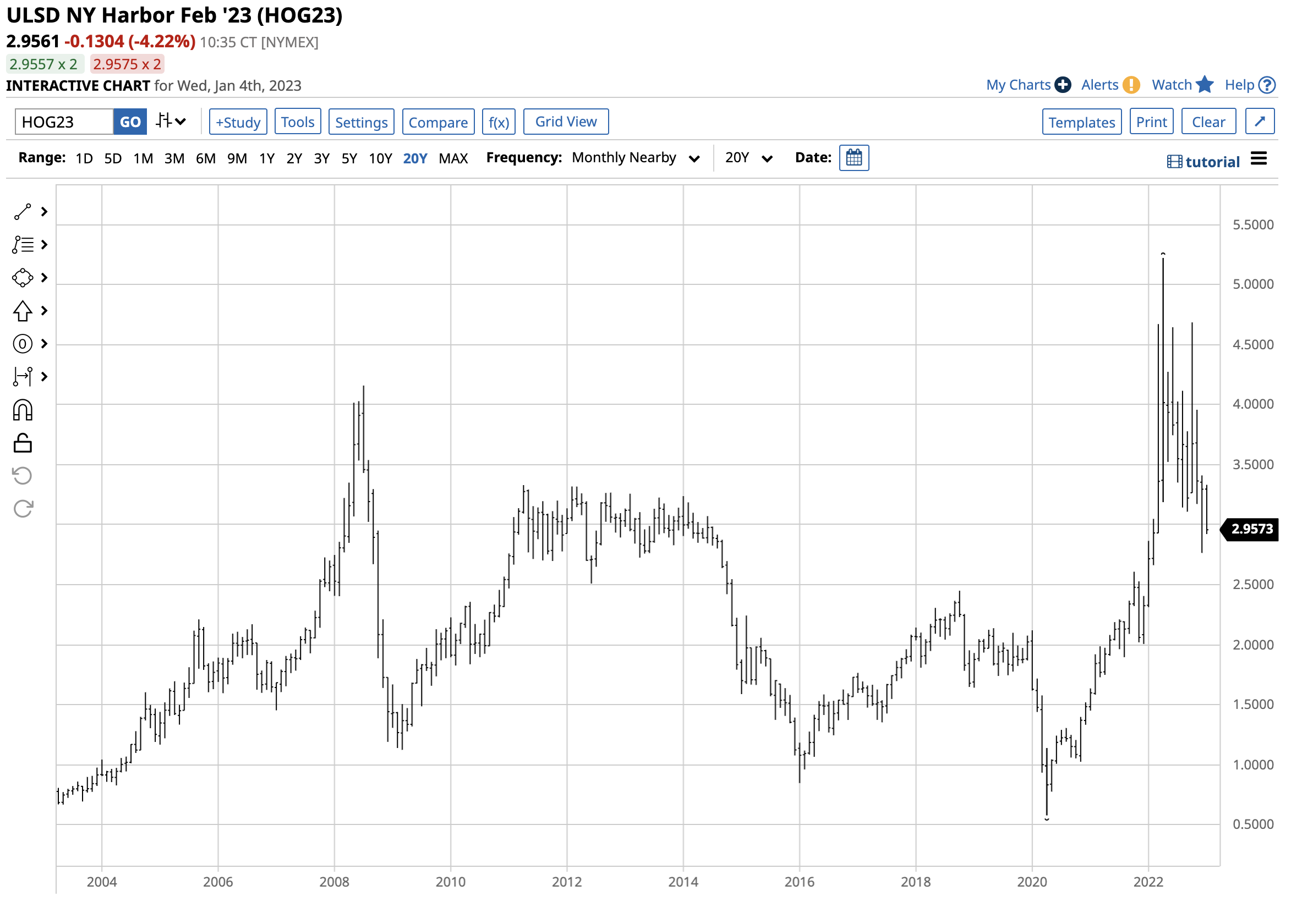 The chart of NYMEX heating oil futures highlights the 2.28% gain in Q4, closing 2021 at the $3.2950 per gallon level. Heating oil futures moved 41.7% higher in 2022, peaking at a record $5.2217 per gallon wholesale level in April 2022.