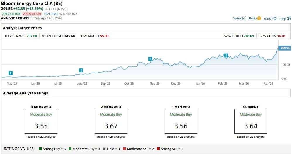 While the consensus rating on BE stock sits at a “Moderate Buy,” the mean price target of about $145 signals potential downside of more than 30% from here.