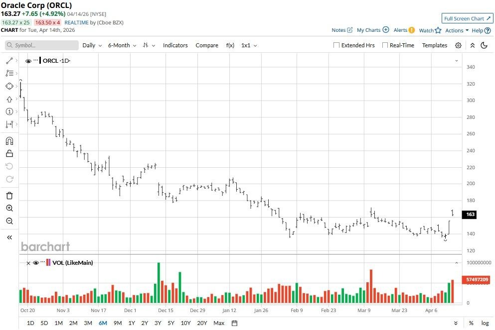 Despite recent gains, Oracle stock remains a laggard in 2026, still down about 20% versus its year-to-date high.