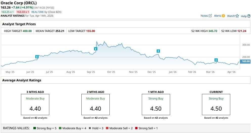 The consensus rating on ORCL stock remains at “Strong Buy” with the mean price target of about $253 indicating potential upside of roughly 55% from here.