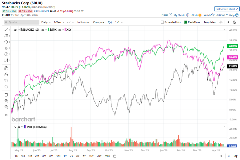 Over the past year, SBUX stock has gained 15.2%, underperforming the S&P 500 Index’s ($SPX) 28.9% gains and the State Street Consumer Discretionary Select Sector SPDR Fund’s (XLY) 22.4% gains over the same time frame.