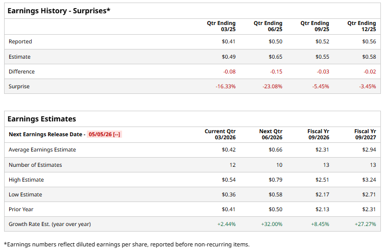 The coffee chain powerhouse is expected to announce its fiscal first-quarter earnings for 2026 in the near future. Ahead of the event, analysts expect SBUX to report a profit of $0.42 per share on a diluted basis, up 2.4% from $0.41 per share in the year-ago quarter. The company failed to beat the consensus estimates in each of the last four quarters.