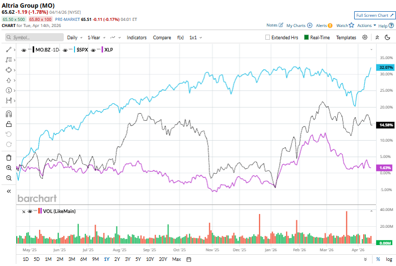 Over the past 52 weeks, MO shares have climbed 14.9%, underperforming both the S&P 500 Index’s ($SPX) 28.9% return but outpacing the Consumer Staples Select Sector SPDR Fund’s (XLP) marginal fall during the same time frame.