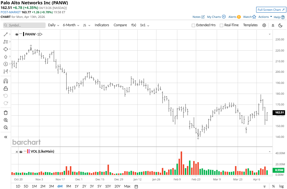 Palo Alto Stock has experienced a volatile year, currently sitting 18% below its January highs. Compared with the S&P 500 Information Technology Index ($SRIT), Palo Alto Networks has faced significant headwinds. While the broader tech index has benefited from the massive surge in AI hardware and semiconductor stocks, PANW’s 18% decline highlights a divergence between "AI builders" and "AI defenders."