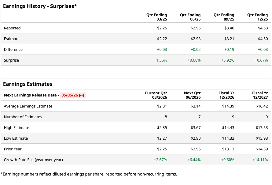 For fiscal 2026, analysts project the company’s EPS to be $14.39, up 9.6% from $13.13 in fiscal 2025. Moreover, its EPS is expected to rise by roughly 14.1% year over year (YoY) to $16.42 in fiscal 2027.