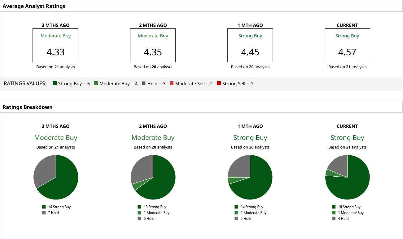 Thus, analysts have earmarked an overall rating of “Strong Buy” for SNDK stock with a mean target price that has already been surpassed. The high target price of $1,800 (not including Evercore's bull case target) indicates an upside potential of about 102% from current levels. Out of 21 analysts covering the stock, 16 have a “Strong Buy” rating, one has a “Moderate Buy” rating, and four have a “Hold” rating.