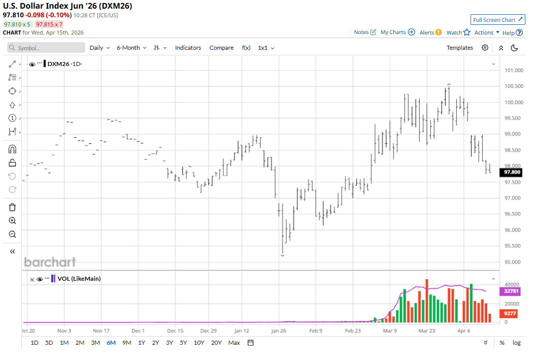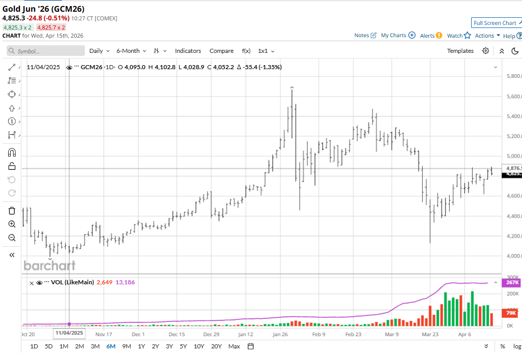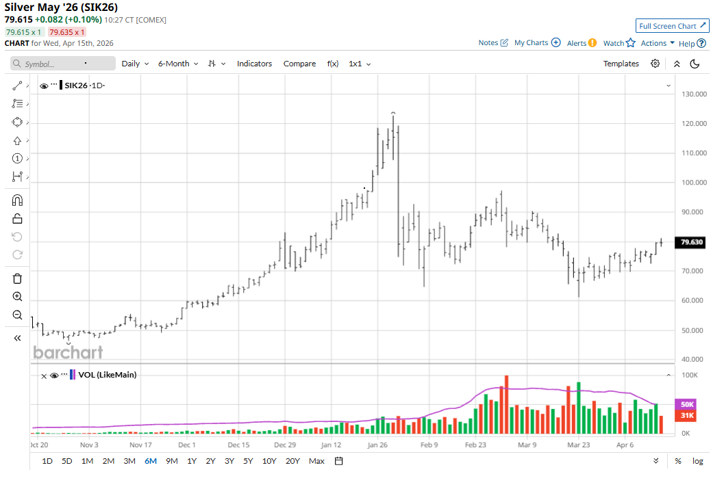 - Still-elevated crude oil (CLK26) prices are overall price-bullish for raw commodities including gold and silver. Crude oil is the leader of the raw commodity market sector, and its rising tide helps to lift all raw commodity boats.