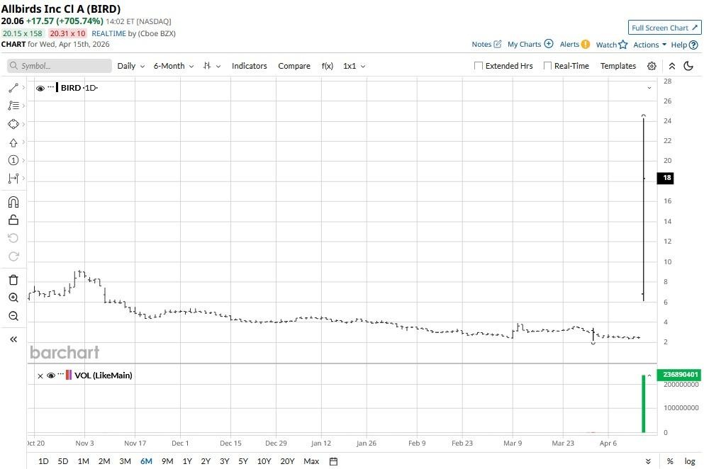 Allbirds (BIRD) stock experienced a nearly 10x rally on April 15 after the footwear firm announced a significant pivot into artificial intelligence (AI) compute infrastructure.