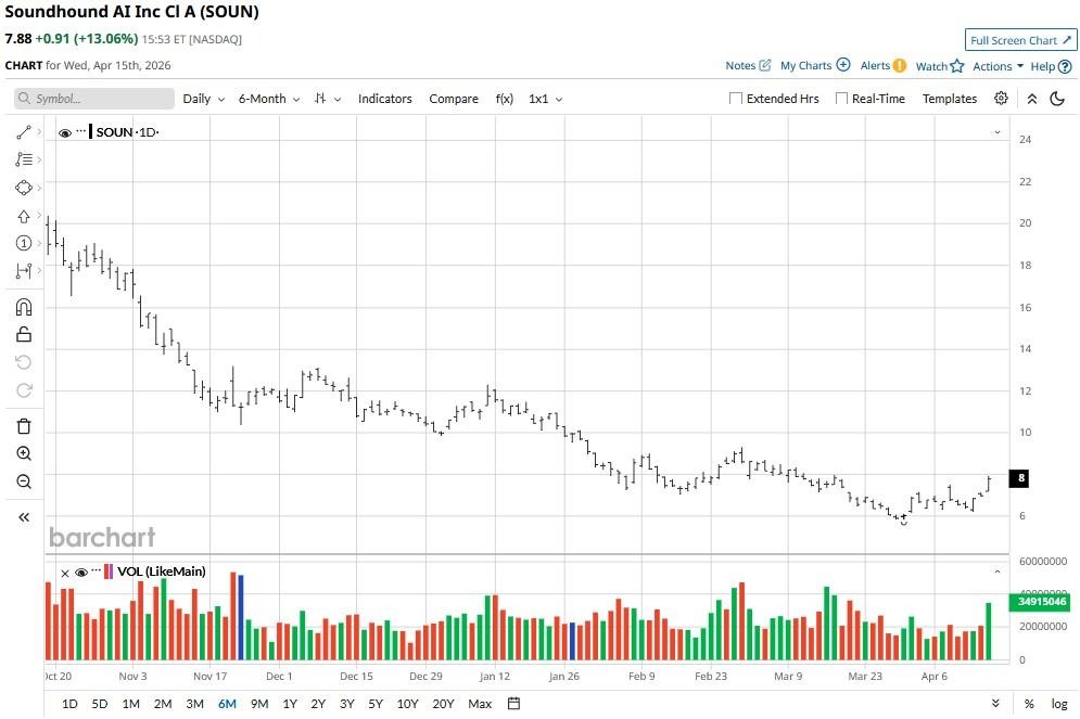 SoundHound (SOUN) stock is pushing significantly higher on Wednesday amid a broader recovery in artificial intelligence (AI) software names and an unusually high options activity.