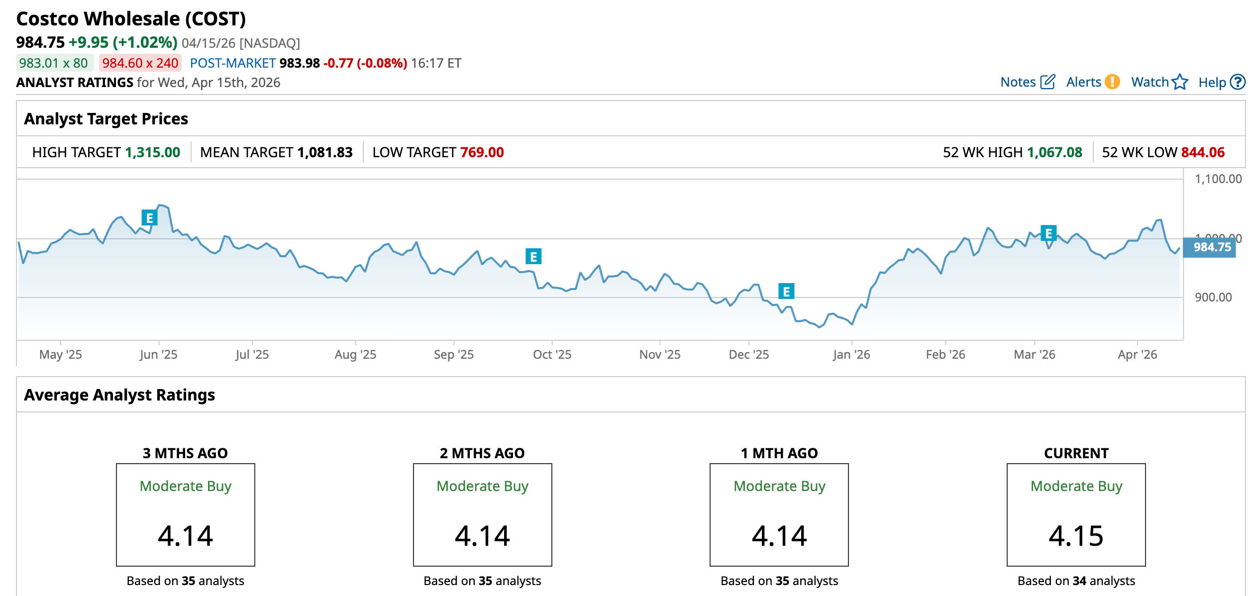 Wall Street monitoring Costco anticipates its Q3 fiscal 2026 revenue to be $68.8 billion, while EPS is expected to rise 14.5% YOY to $4.90. For fiscal 2026, the bottom line is expected to grow nearly 13% annually to $20.32 per share, and then rise by another 9.9% to $22.33 per share in fiscal year 2027.