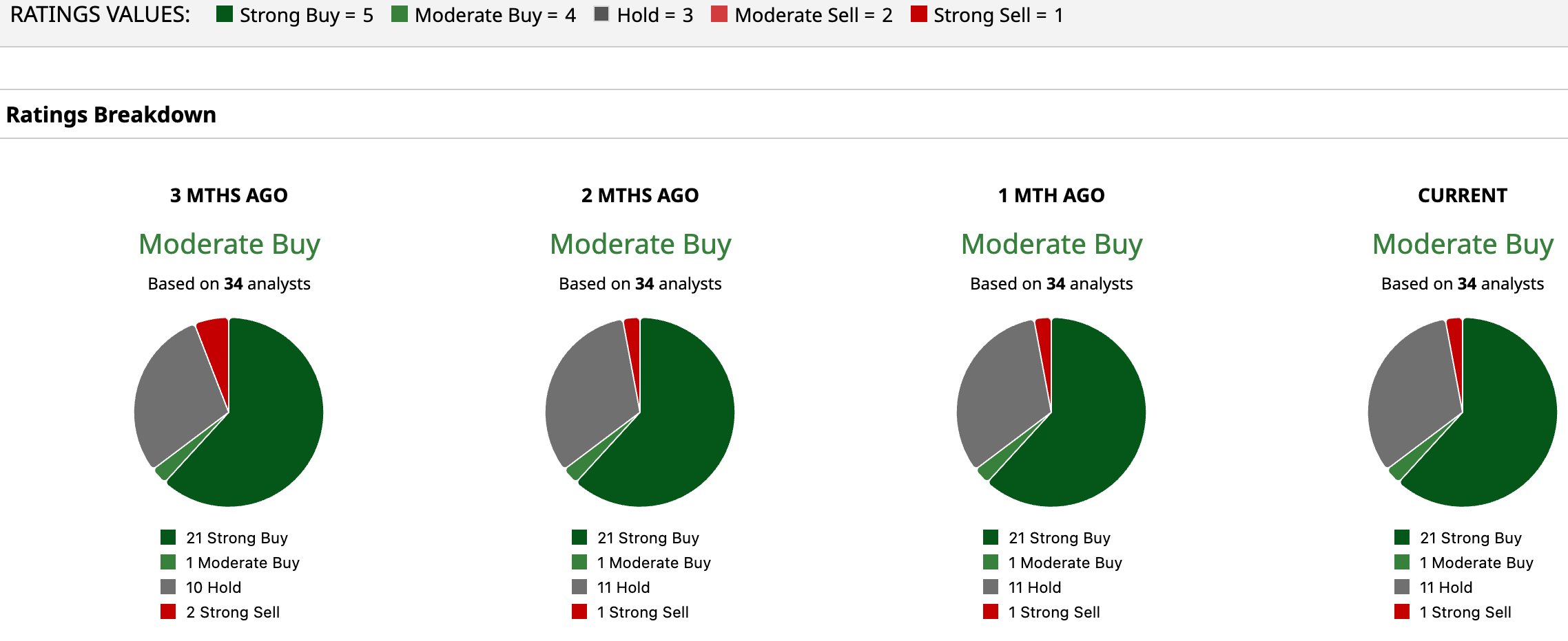Overall, Costco has an overall rating of “Moderate Buy.” Of the 34 analysts covering the stock, 19 suggest a “Strong Buy,” three advise a “Moderate Buy,” 11 recommend a “Hold,” and one is skeptical, having a “Strong Sell” rating.