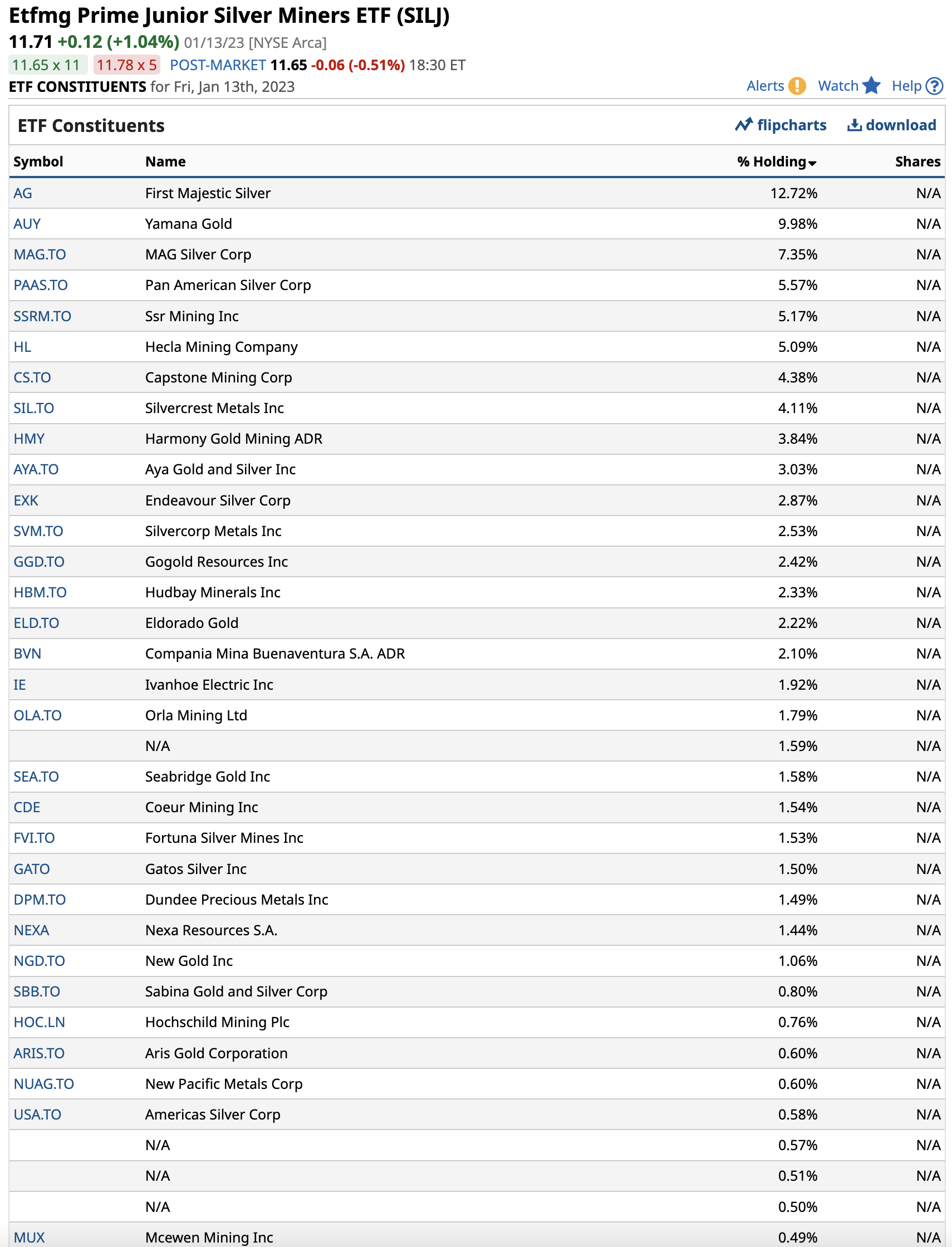 The ETFMG Prime Junior Silver Miners ETF product (SILJ) has a portfolio of the leading junior silver miners and exploration companies, including: