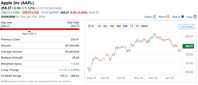 Apple is showing an IV Percentile of 63% and an IV Rank of 22.12%. The current level of implied volatility is 27.92% compared to a 52-week high of 65.20% and a low of 17.33%.