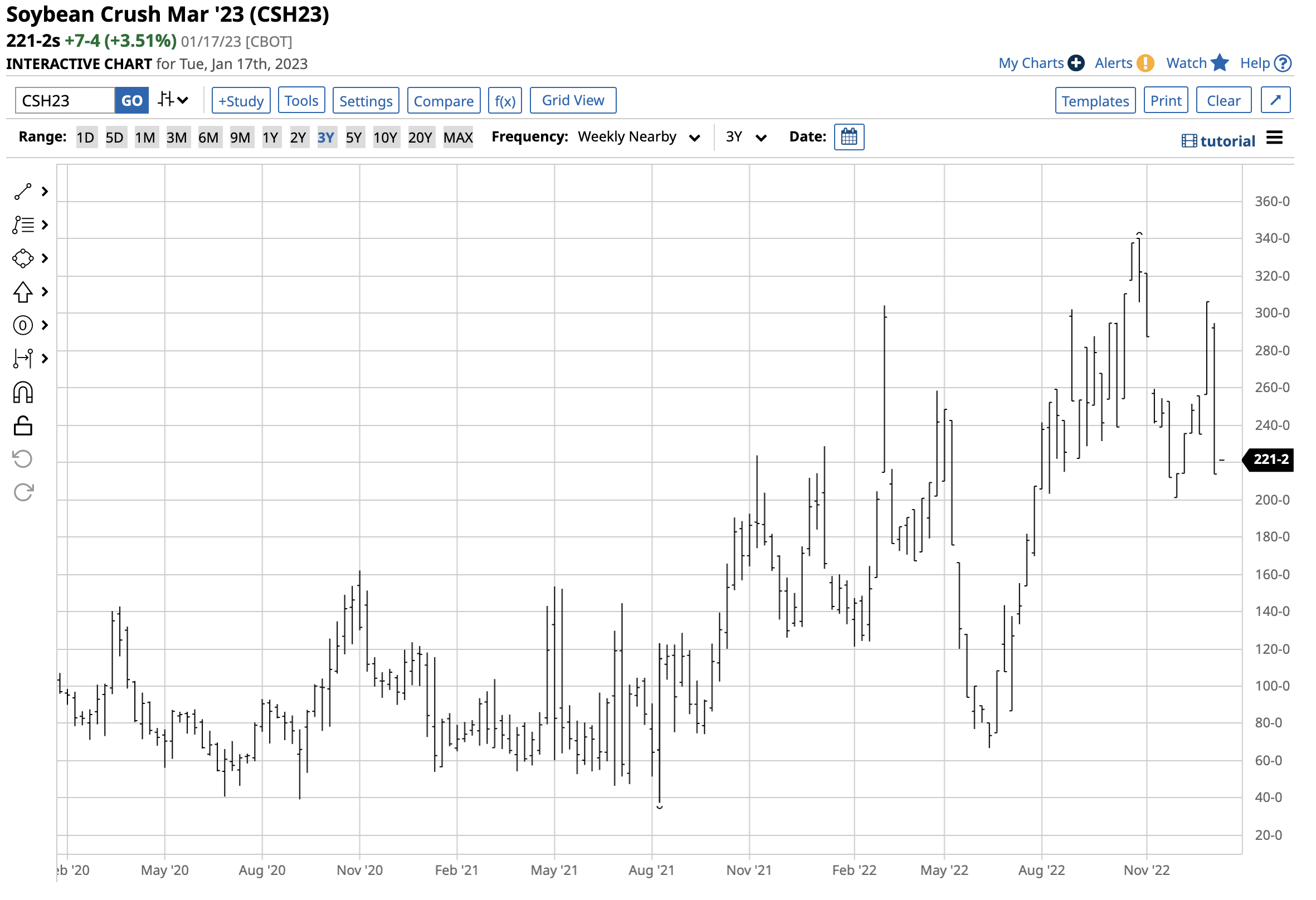 Processors crush soybeans into two products, meal and oil. The crush spread is a real-time demand indicator for the oilseeds.