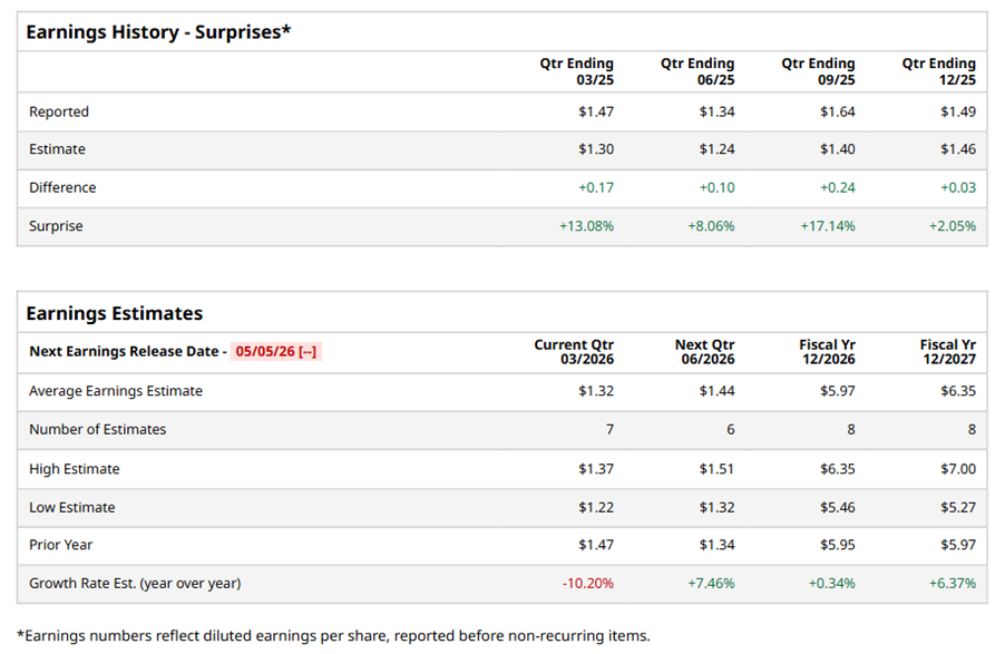 Expeditors International of Washington, Inc. (EXPD), headquartered in Seattle, Washington, provides logistics services. Valued at $19.3 billion by market cap, the company provides air and ocean freight forwarding, vendor consolidation, customs clearance, marine insurance, distribution, and other international logistics services. The leading non-asset-based third-party logistics provider is expected to announce its fiscal first-quarter earnings for 2026 on Tuesday, May 5.
