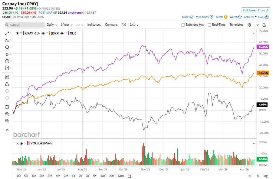 CPAY stock has underperformed the S&P 500 Index’s ($SPX) 30.1% gains over the past 52 weeks, with shares up 3.6% during this period. Similarly, it underperformed the State Street Technology Select Sector SPDR ETF’s (XLK) 49.6% gains over the same time frame.